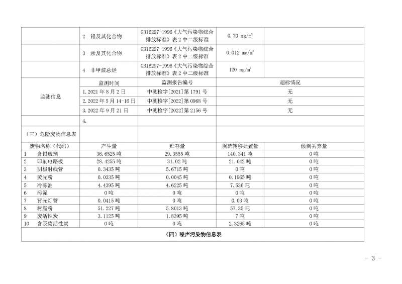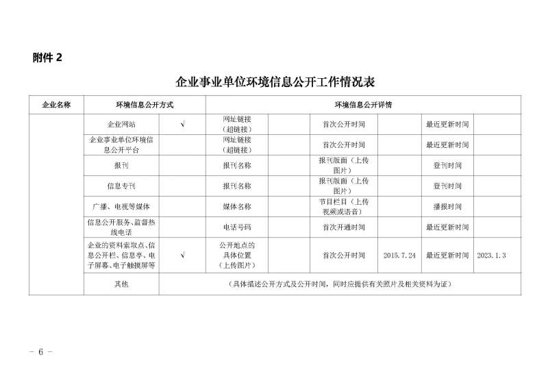 2022年第四季度环境信息公开表