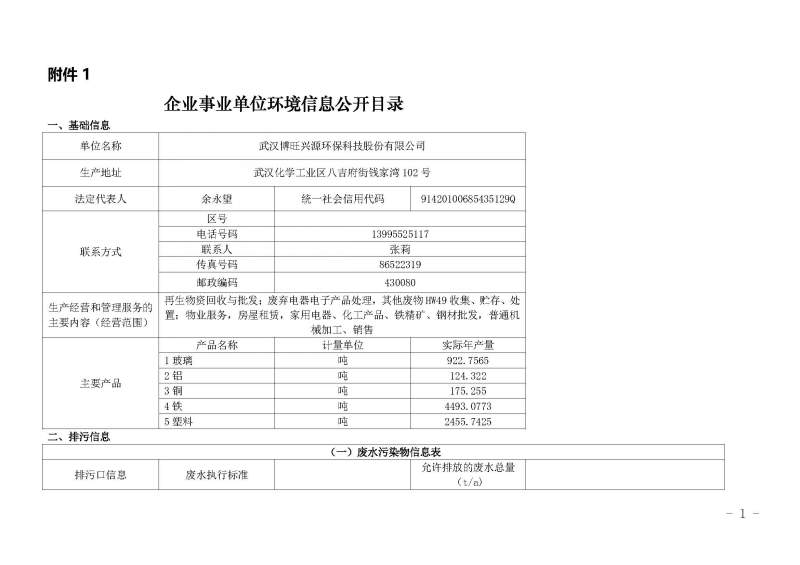 2023年第一季度环境信息公开表